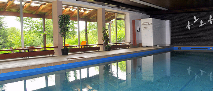 Herrliches Badevergnügen für Jung und Alt im 28°C (84qm) warmen Wasser verspricht unser großes Hallenbad. Massagedüsen erhöhen den Badespaß.